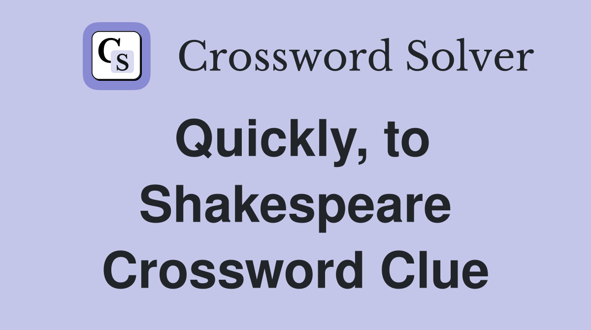 Quickly to Shakespeare Crossword Clue Answers Crossword Solver