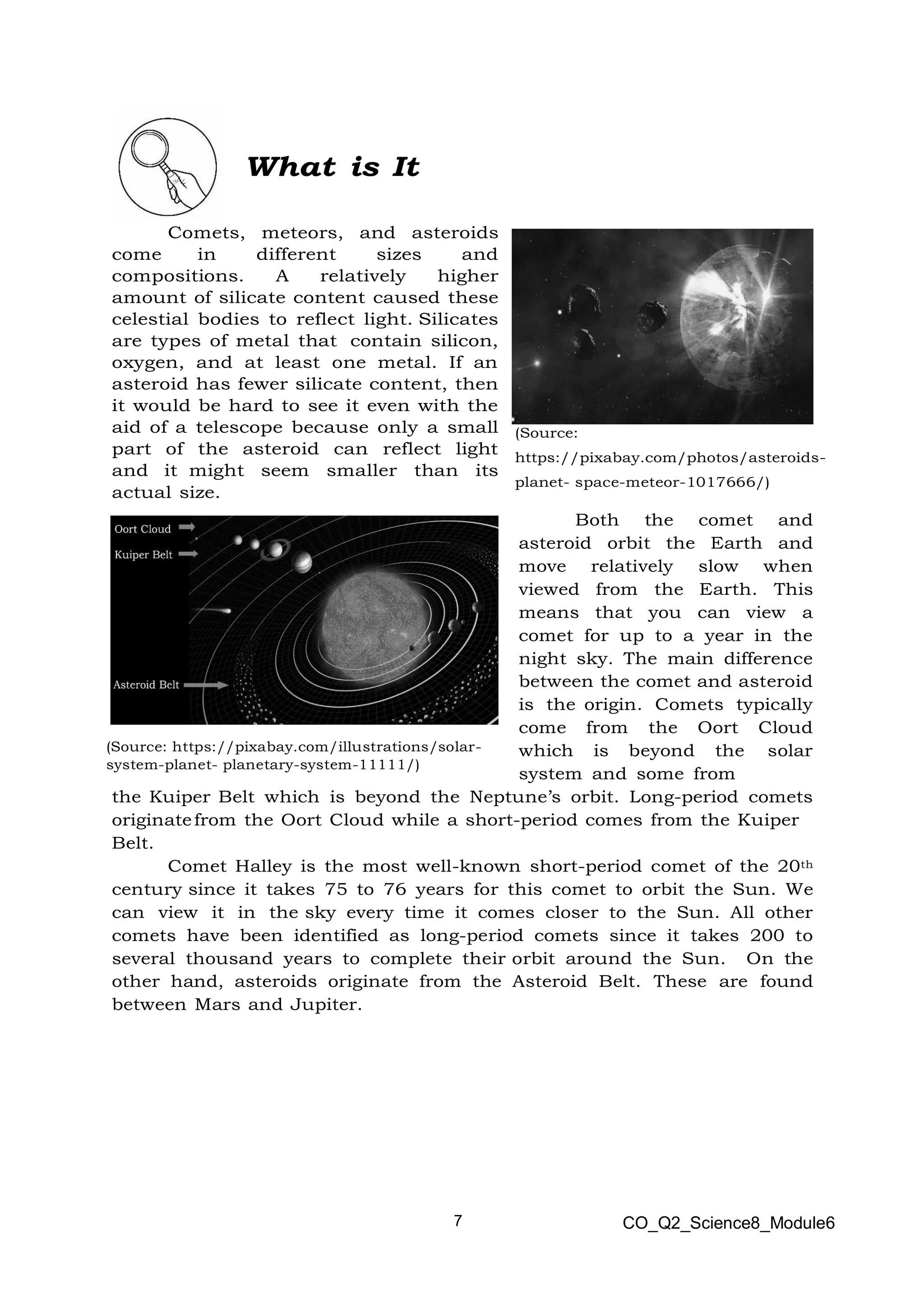 science8 q2 mod6 Comets Asteroids and Meteors pdf