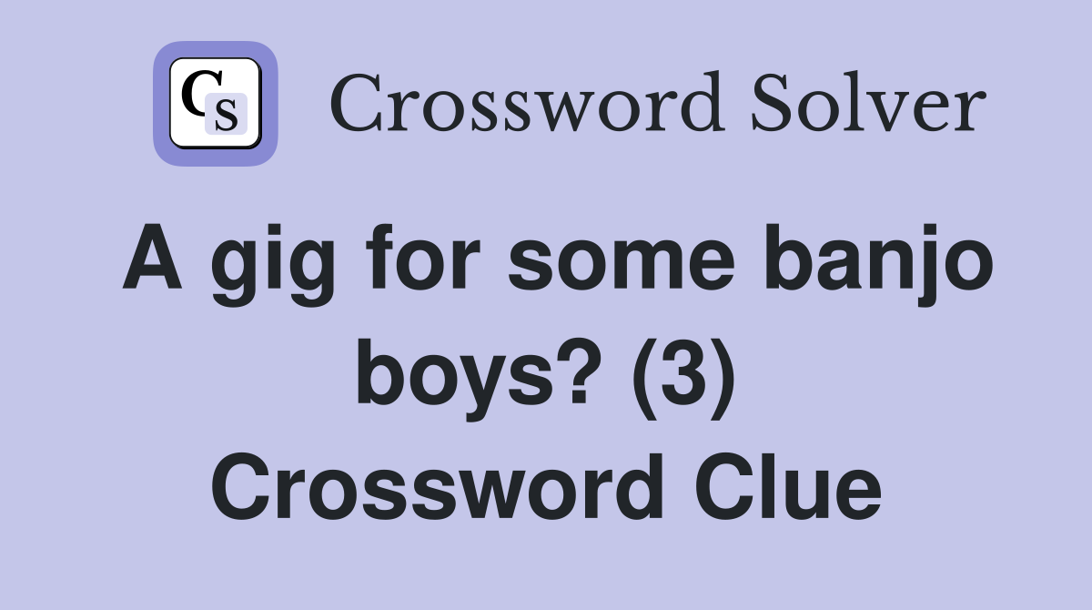A gig for some banjo boys? (3) Crossword Clue Answers Crossword Solver