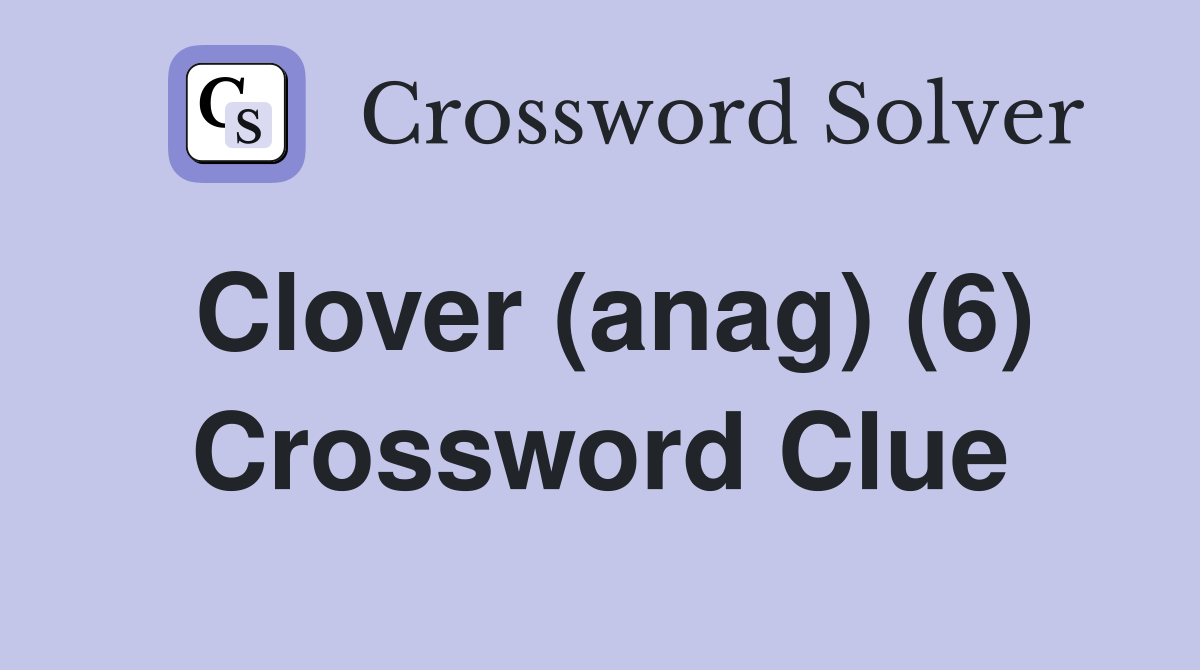 Clover (anag) (6) Crossword Clue Answers Crossword Solver