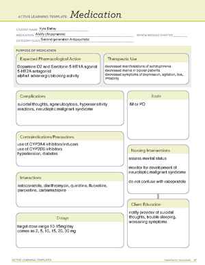 Clozapine ATI Template ACTIVE LEARNING TEMPLATES Medication STUDENT