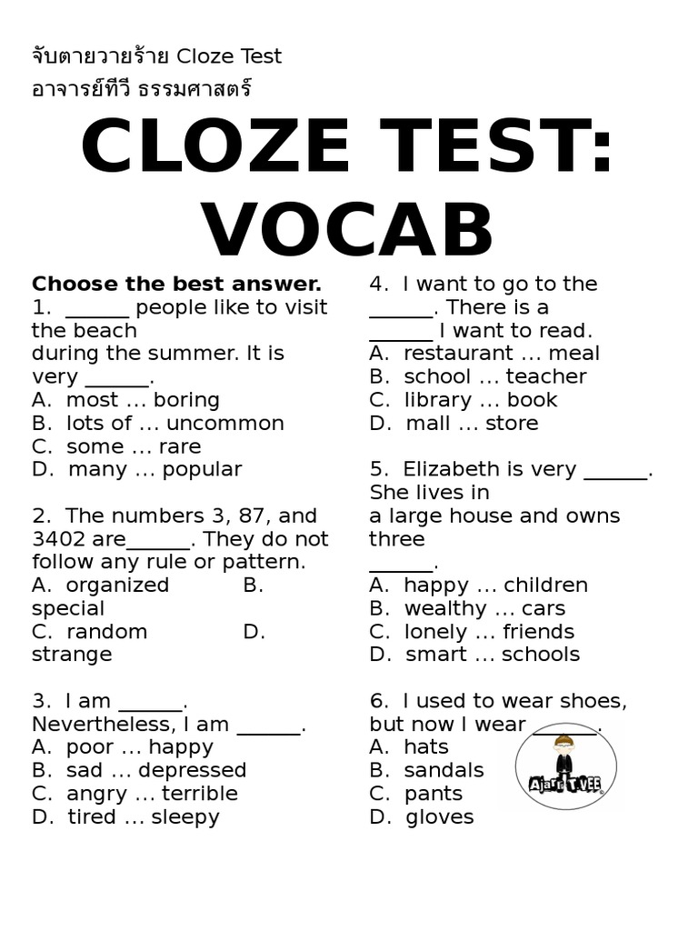 Cloze Test Grammar Vocabulary in Reading Level A (Easy) Easy