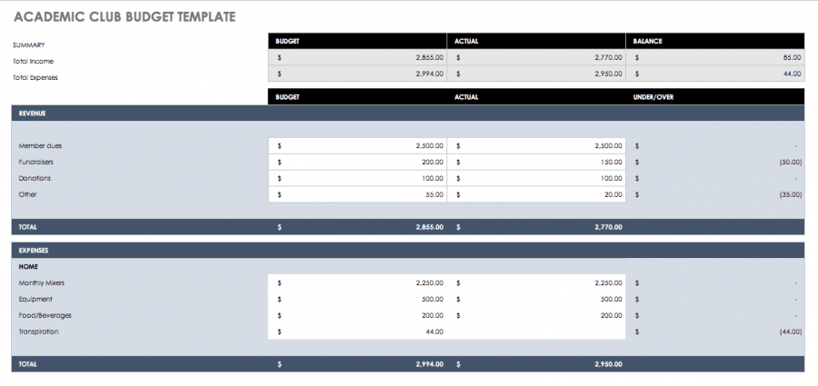 Academic Club Budget Template in Word Excel Google Sheets Google