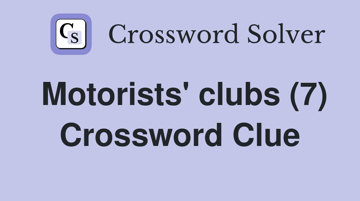 Motorists #39 clubs (7) Crossword Clue Answers Crossword Solver