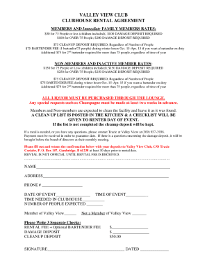 Fillable Online VALLEY VIEW CLUB CLUBHOUSE RENTAL AGREEMENT Fax Email
