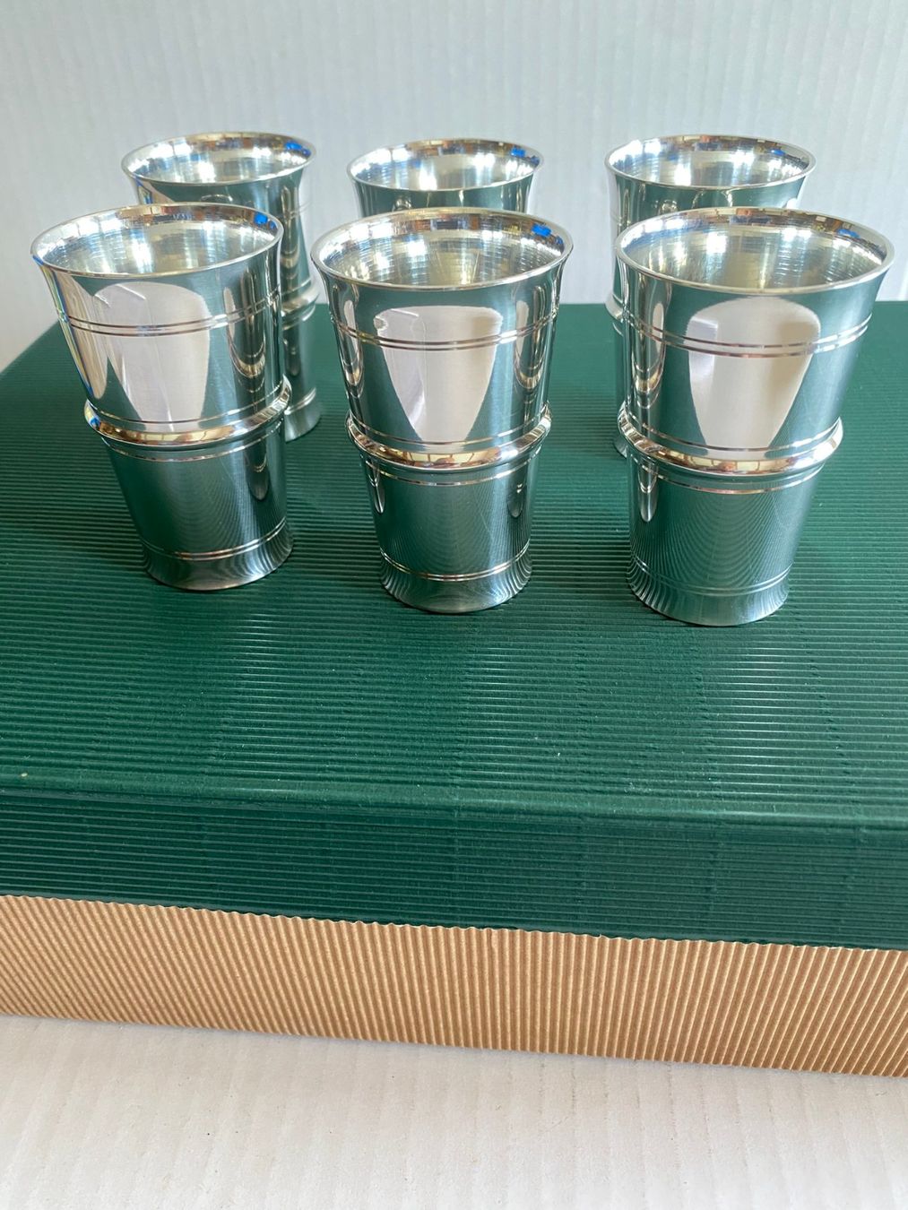 6 Stk Zinnbecher / Feinzinn H 8 cm D 5 cm (Neu (gemäss Beschreibung