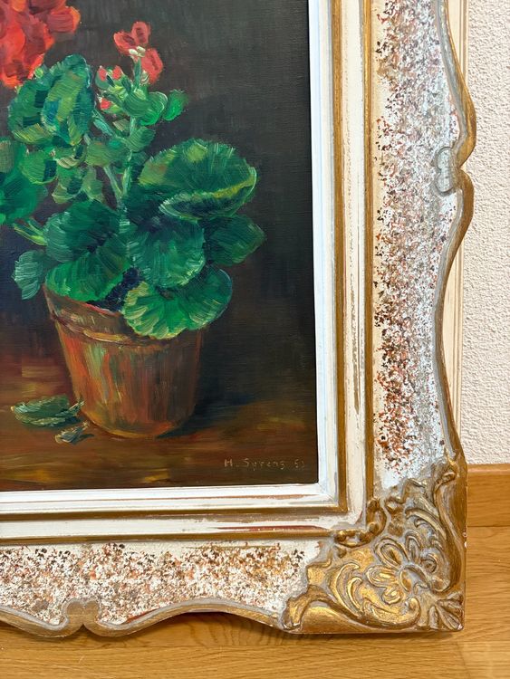 H Spreng #39 53 Geranien Öl Gemälde 58 cm breit x 66 cm hoch (Gebraucht