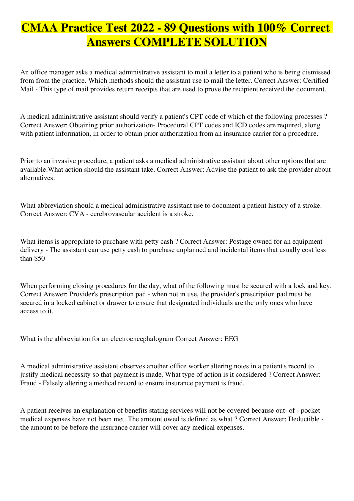 CMAA Practice Test NHA 2022 with COMPLETE SOLUTION CMAA Stuvia US