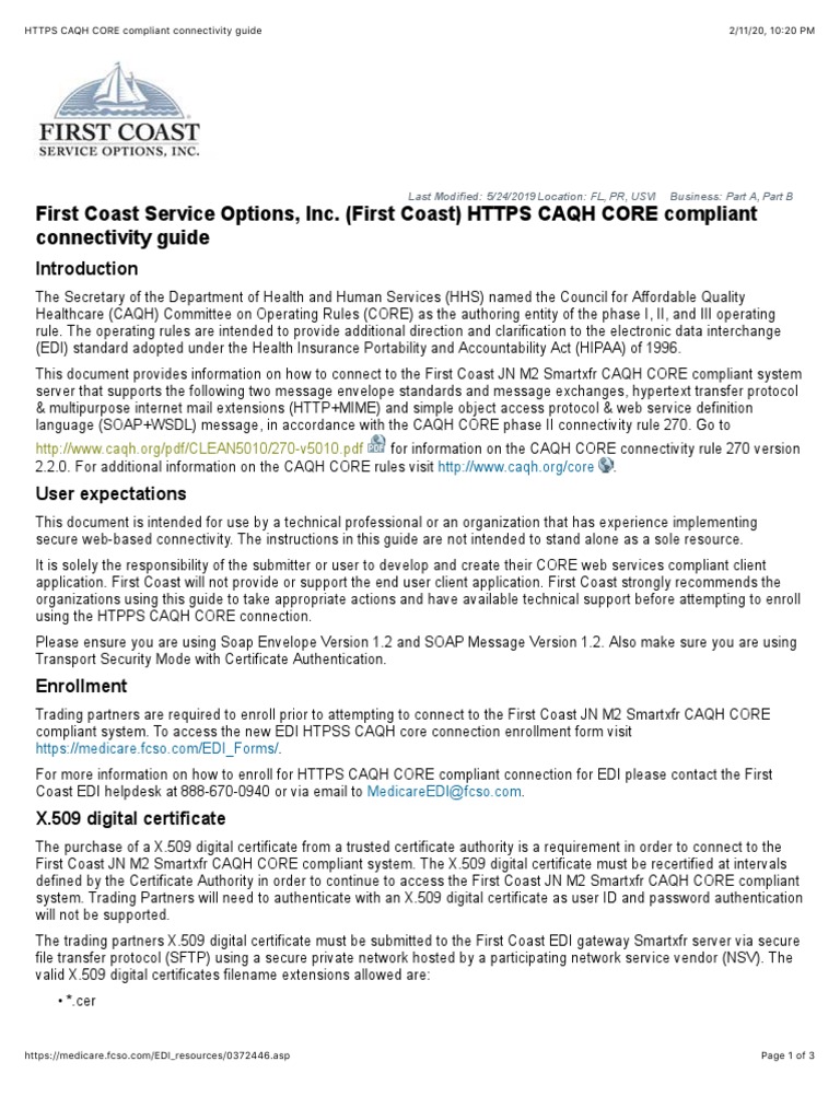 HTTPS CAQH CORE Compliant Connectivity Guide PDF Public Key