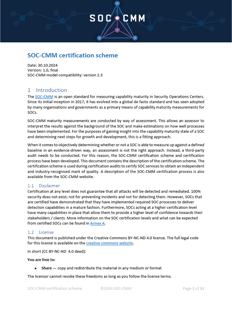 Soc cmm Certification Scheme PDF License Computer Security