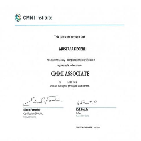 Dr Mustafa Degerli 2018 Certified CMMI Associate The First
