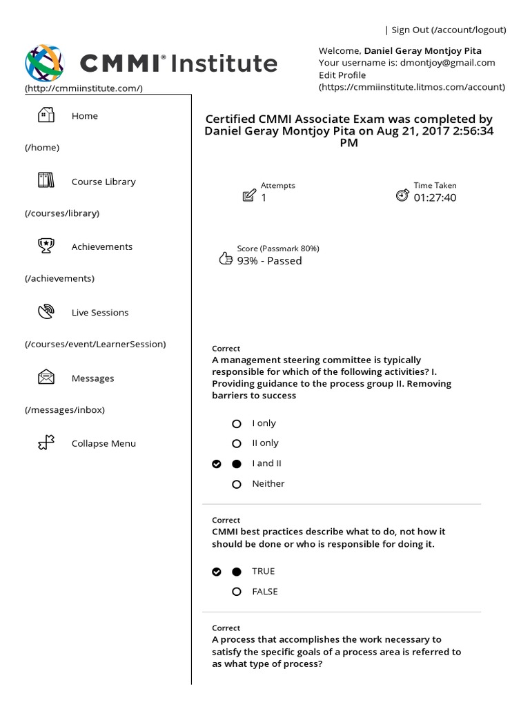 Certified CMMI Associate Exam Was Completed by Daniel Geray Montjoy