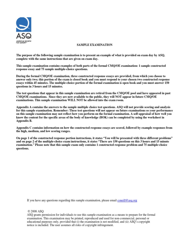 Cmqoe Sample Exam PDF Multiple Choice Test (Assessment)
