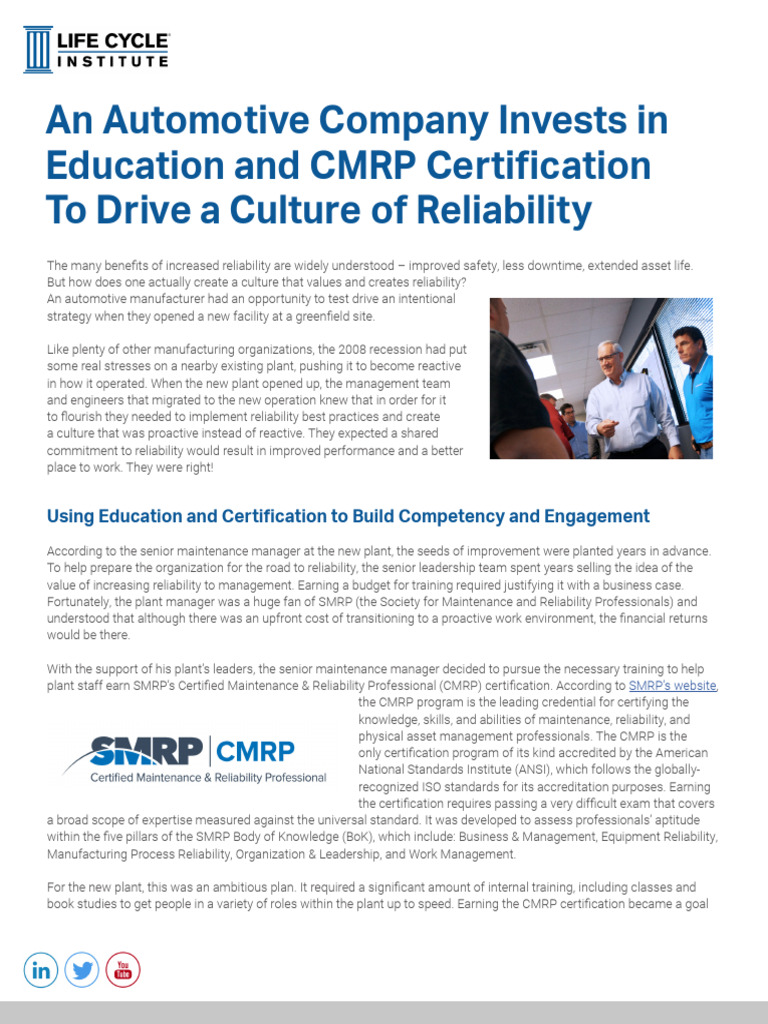 An Automotive Company Invests in Education and CMRP Certification To