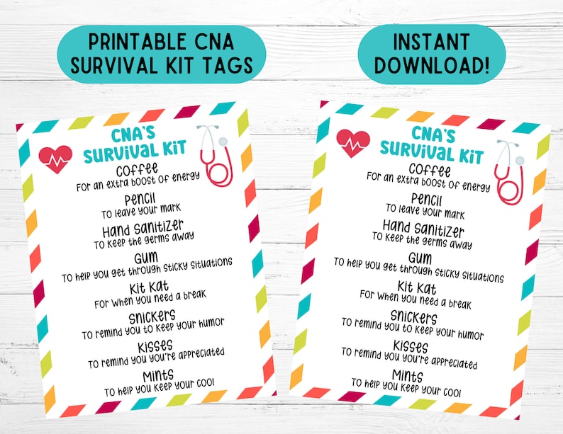 CNA Survival Kit Tag Certified Nursing Assistant Printable Survival Kit