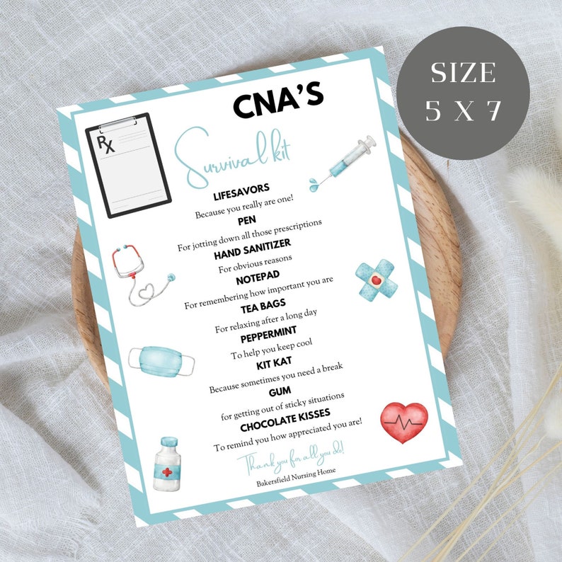 EDITABLE CNA #39 S Survival Kit Tag CNA Appreciation Gift Idea Medical