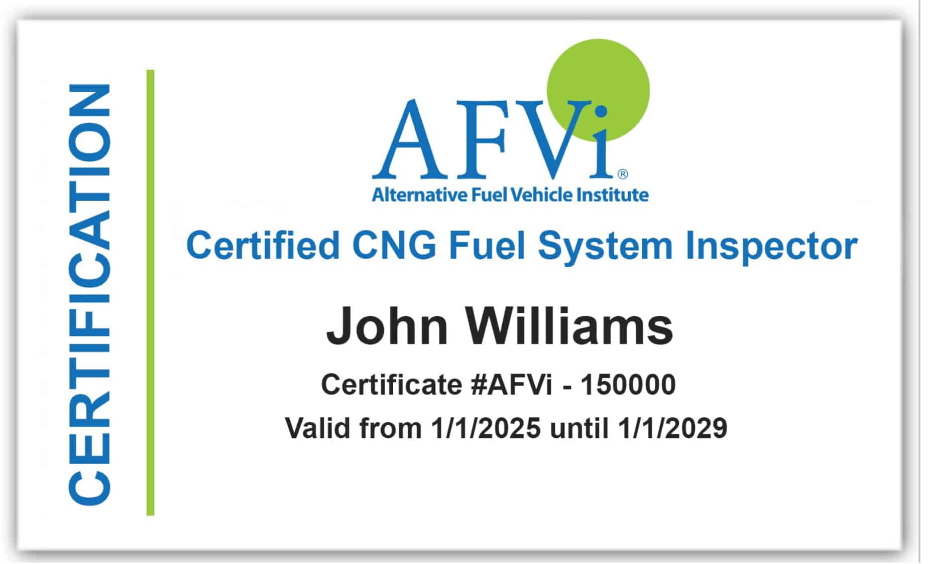 CNG Fuel System Inspector Certification Alternative Fuel Vehicle