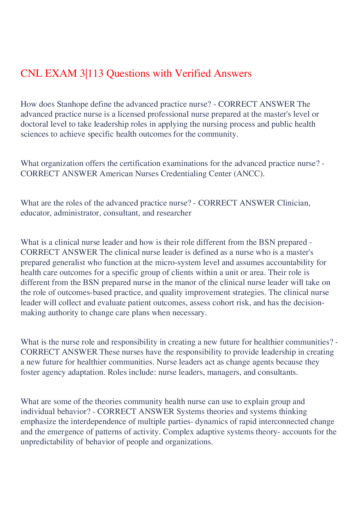 Clinical Nurse Leader (CNL) Certification Exam Questions With Answers