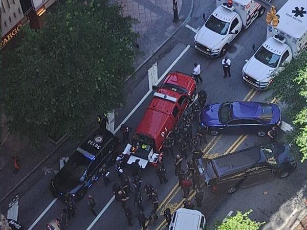 Four people were shot in the food court of a downtown Atlanta office