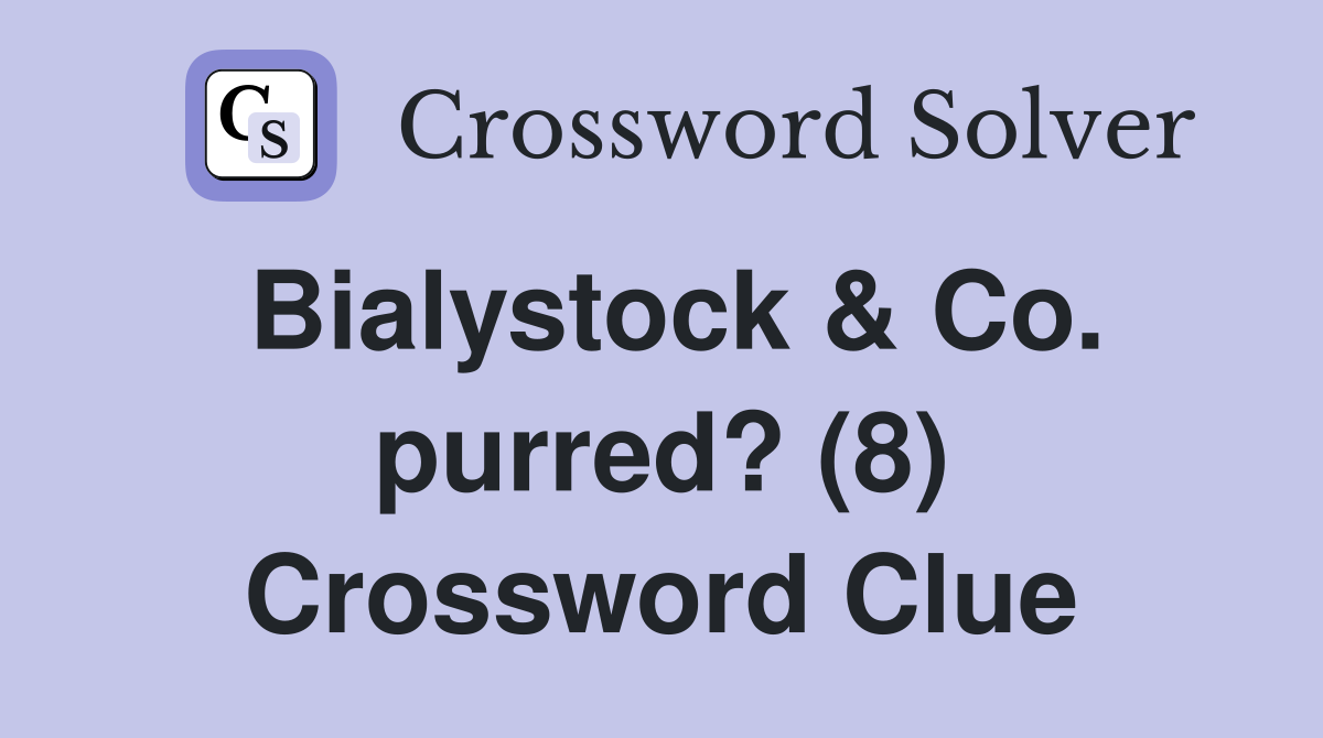 Bialystock Co purred? (8) Crossword Clue Answers Crossword Solver