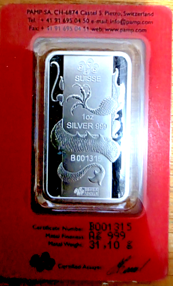 2012 Lunar Calendar Series quot Dragon quot Suisse Bar 1 oz 999 Fine Silver w