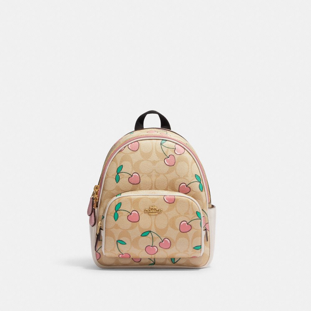 COACH® Mini Court Backpack In Signature Canvas With Heart Cherry Print