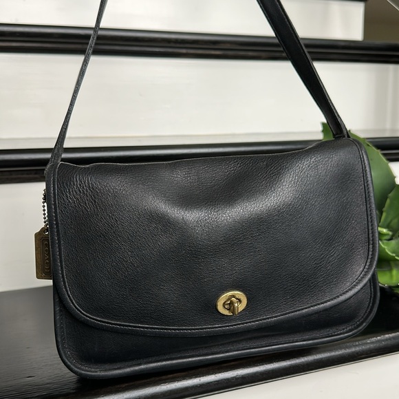Coach Court Vintage Black Leather Crossbody Shoulder Gem