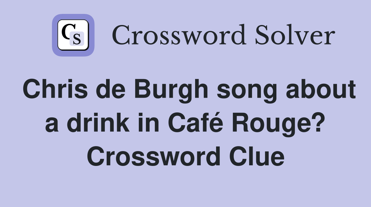 Chris de Burgh song about a drink in Café Rouge? Crossword Clue