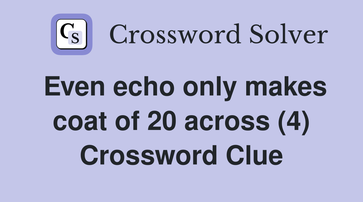 Even echo only makes coat of 20 across (4) Crossword Clue Answers
