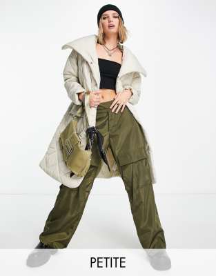 Violet Romance quilted shawl neck longline coat in khaki ASOS