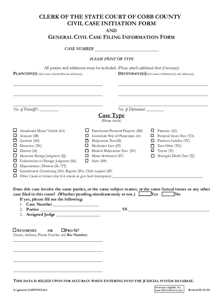 Cobb County Civil Case Disposition Form Civil Form 2023