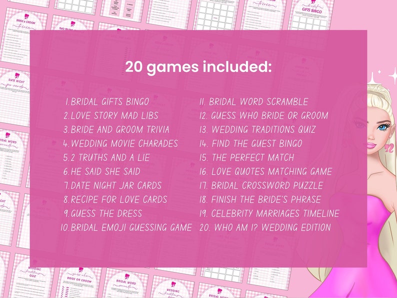 20 Games Pink Barbie Bachelorette Bridal Shower Party Wedding Shower