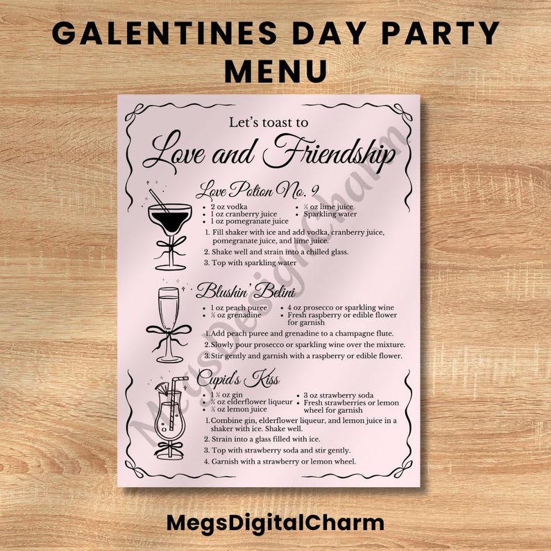Editable Galentines Day / Valentines Day Party Menu Template Etsy