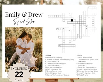 Custom Wedding Crossword Puzzle Sip and Solve Reception Decor