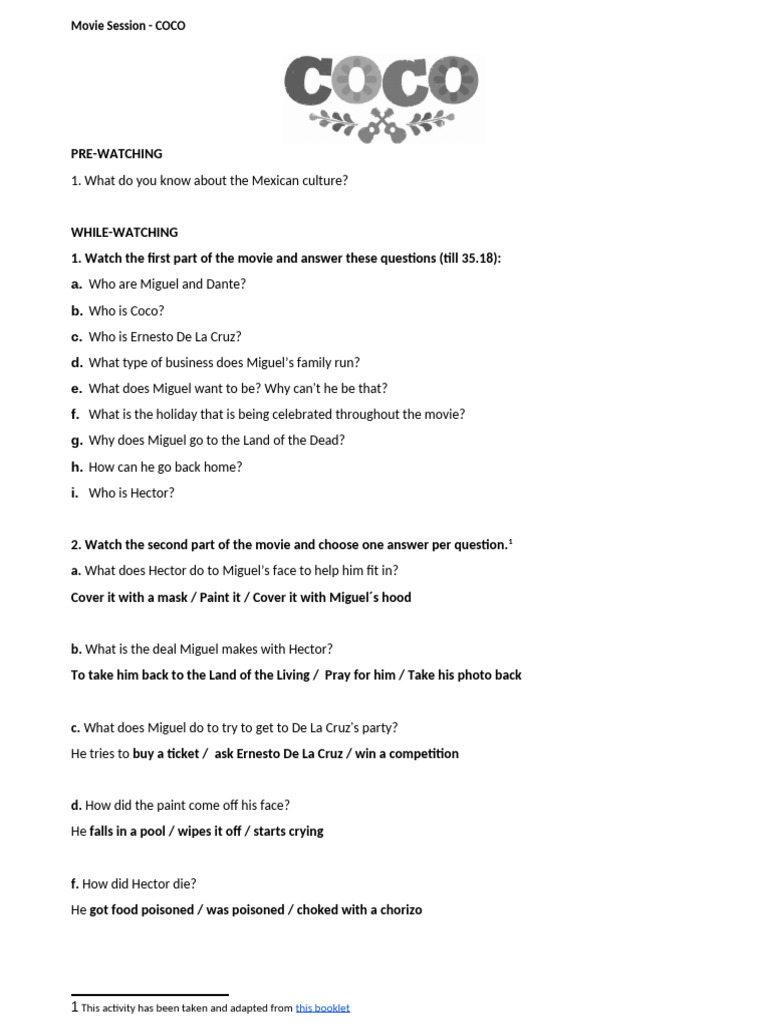 Coco Worksheet Answers