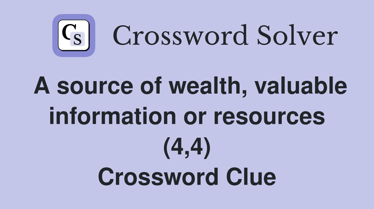 A source of wealth valuable information or resources (4 4) Crossword