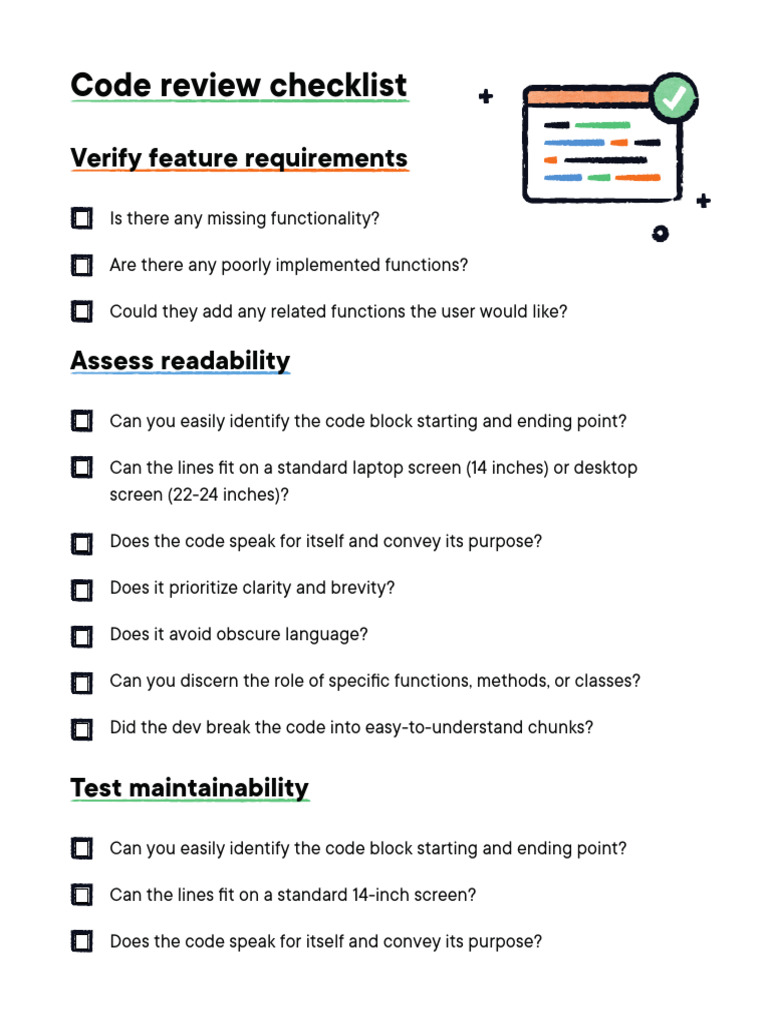 Free software code review checklist template google docs word Artofit