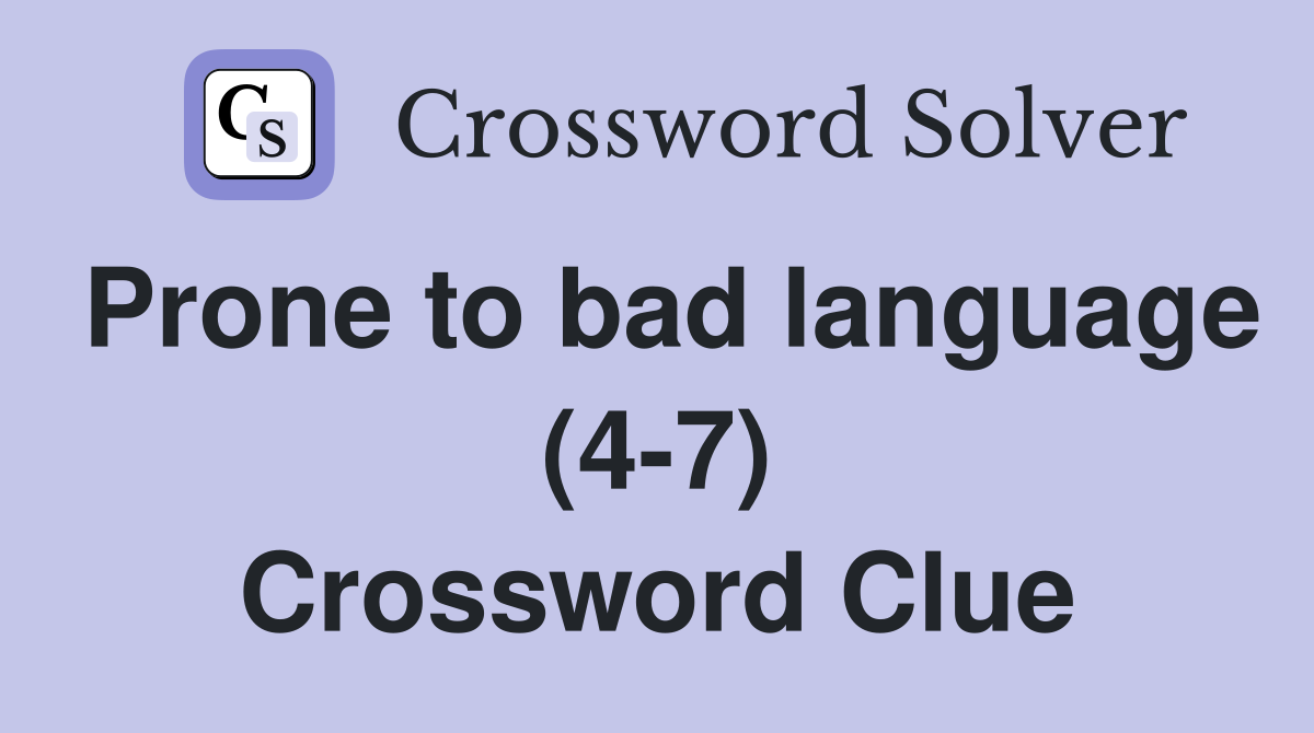 Prone to bad language (4 7) Crossword Clue Answers Crossword Solver