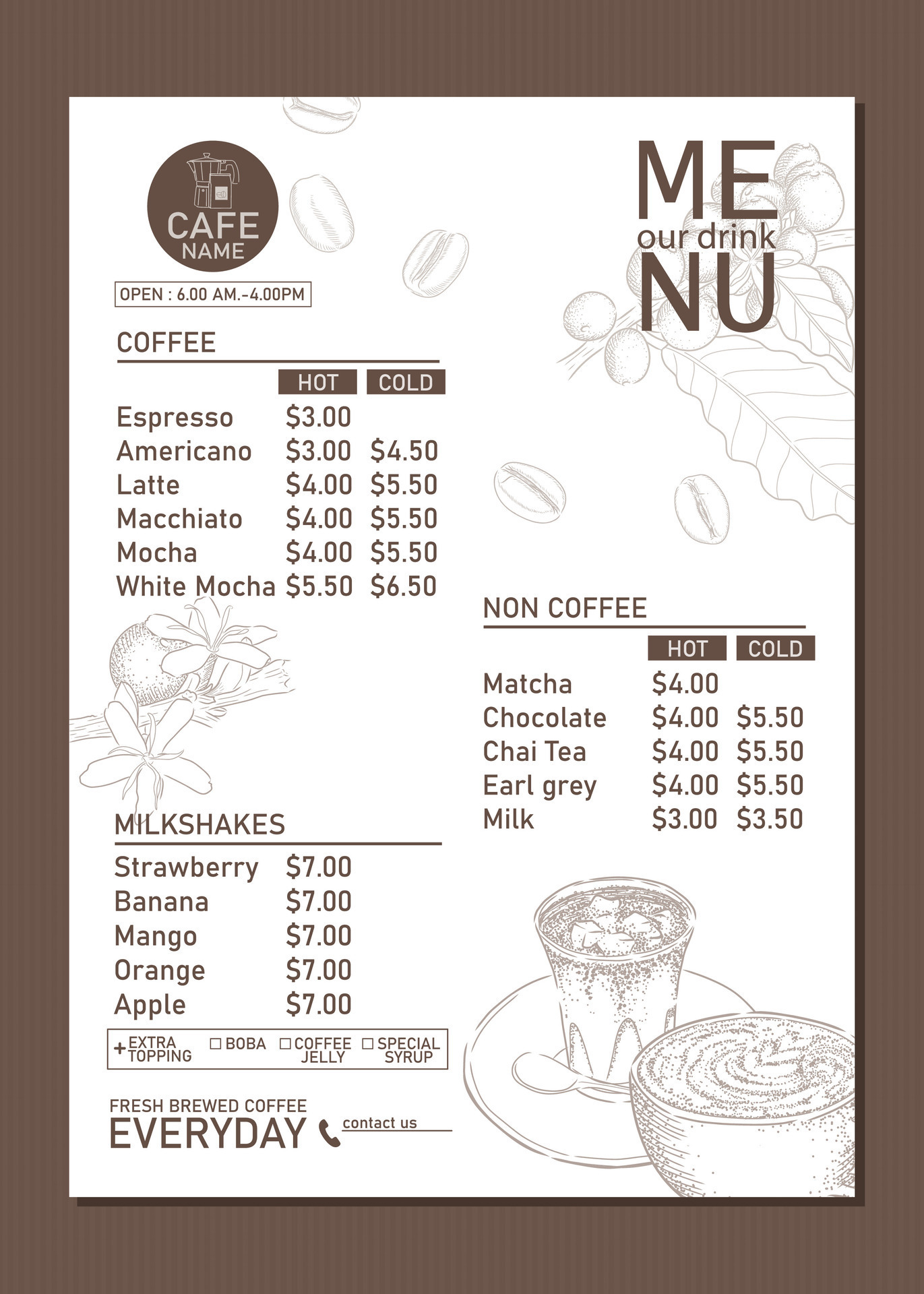 Coffee Menu Template Coffee Shop Menu Template Cafe Menu Price List