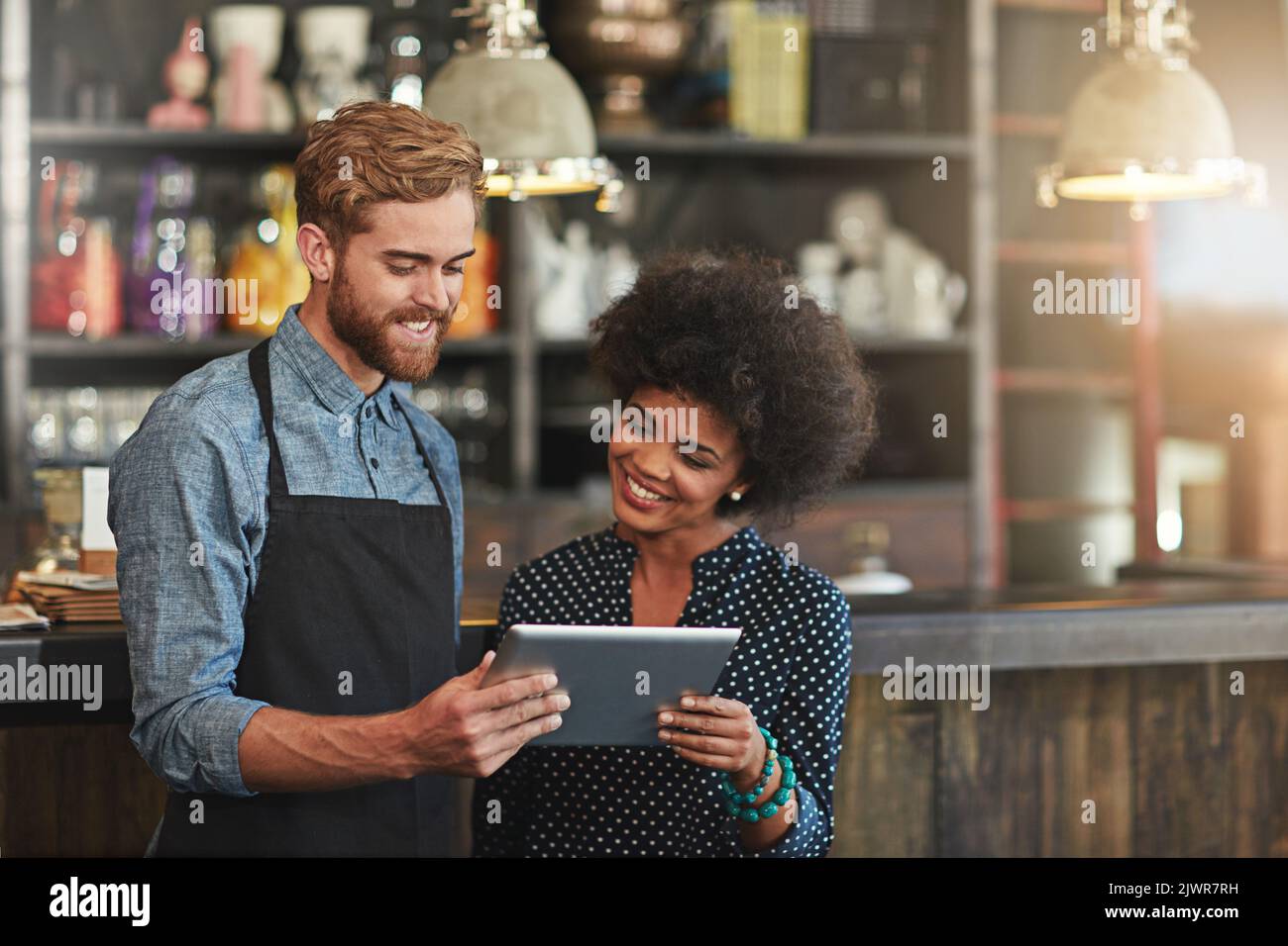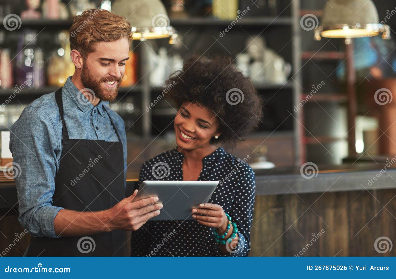 Its easier to manage your business online young coffee shop workers