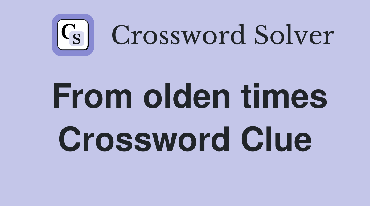 From olden times Crossword Clue Answers Crossword Solver