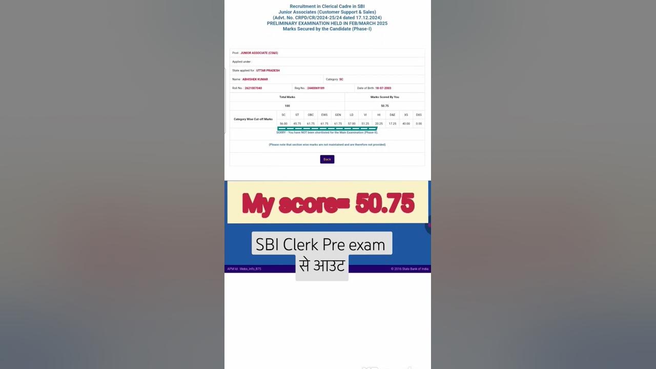 SBI Clerk Result Failed #sbi #bank #exam YouTube