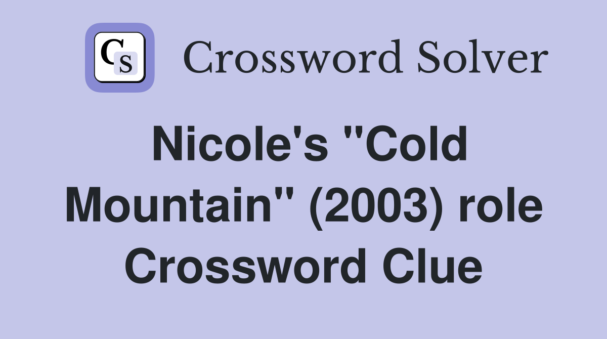 Nicole #39 s quot Cold Mountain quot (2003) role Crossword Clue Answers