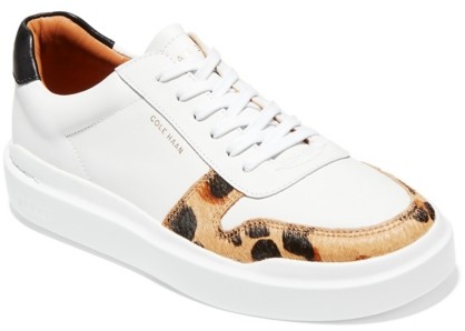 Cole Haan Grand Pro Rally Court Sneaker White Leather With Animal Print