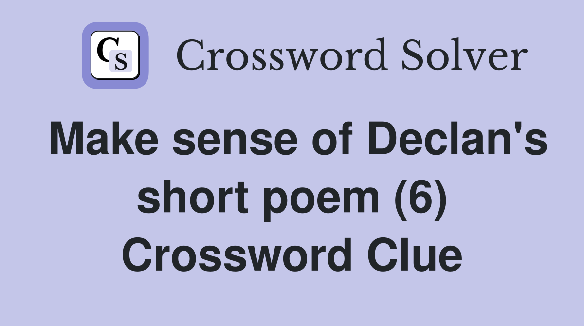 Make sense of Declan #39 s short poem (6) Crossword Clue Answers