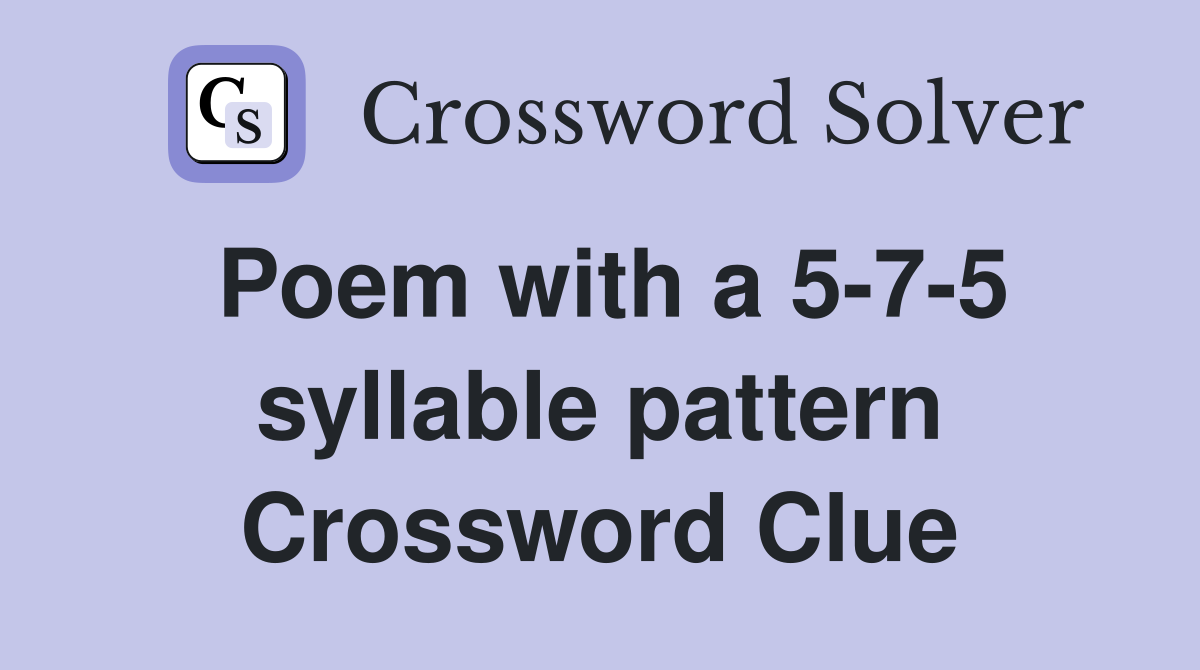 Poem with a 5 7 5 syllable pattern Crossword Clue Answers Crossword