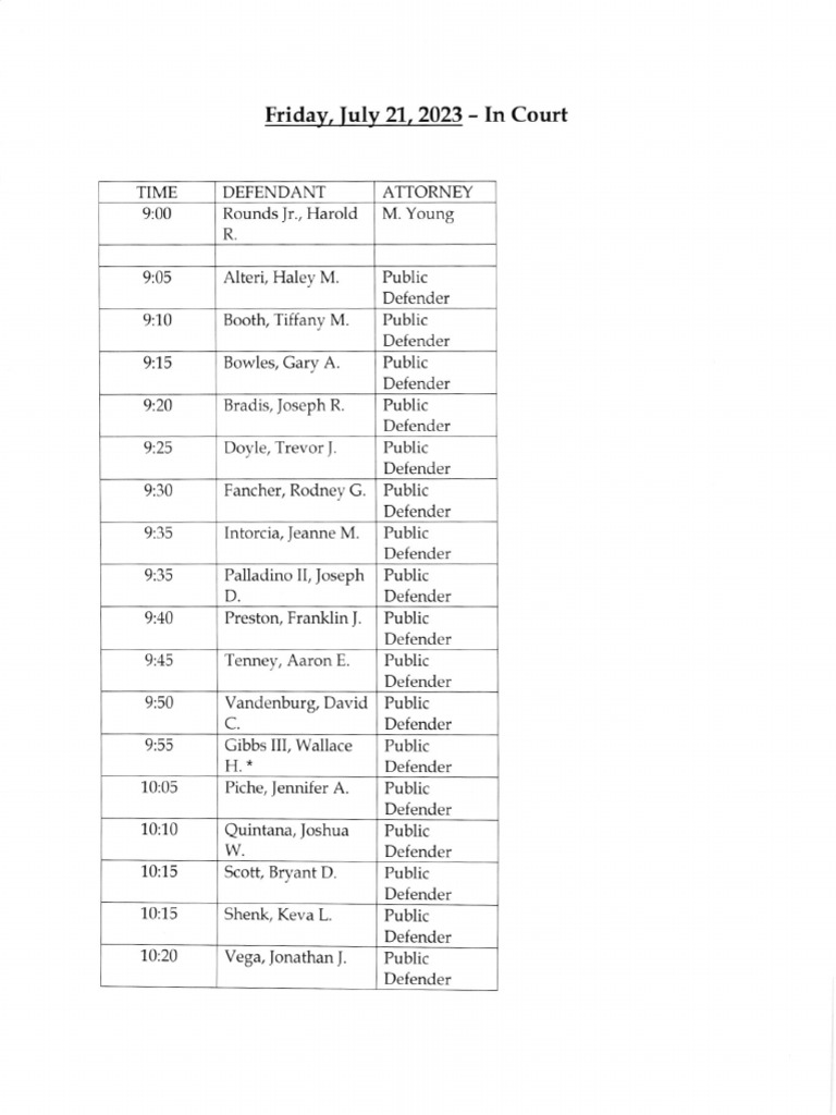 Jefferson County Court Calendar July 21 2023 PDF Law