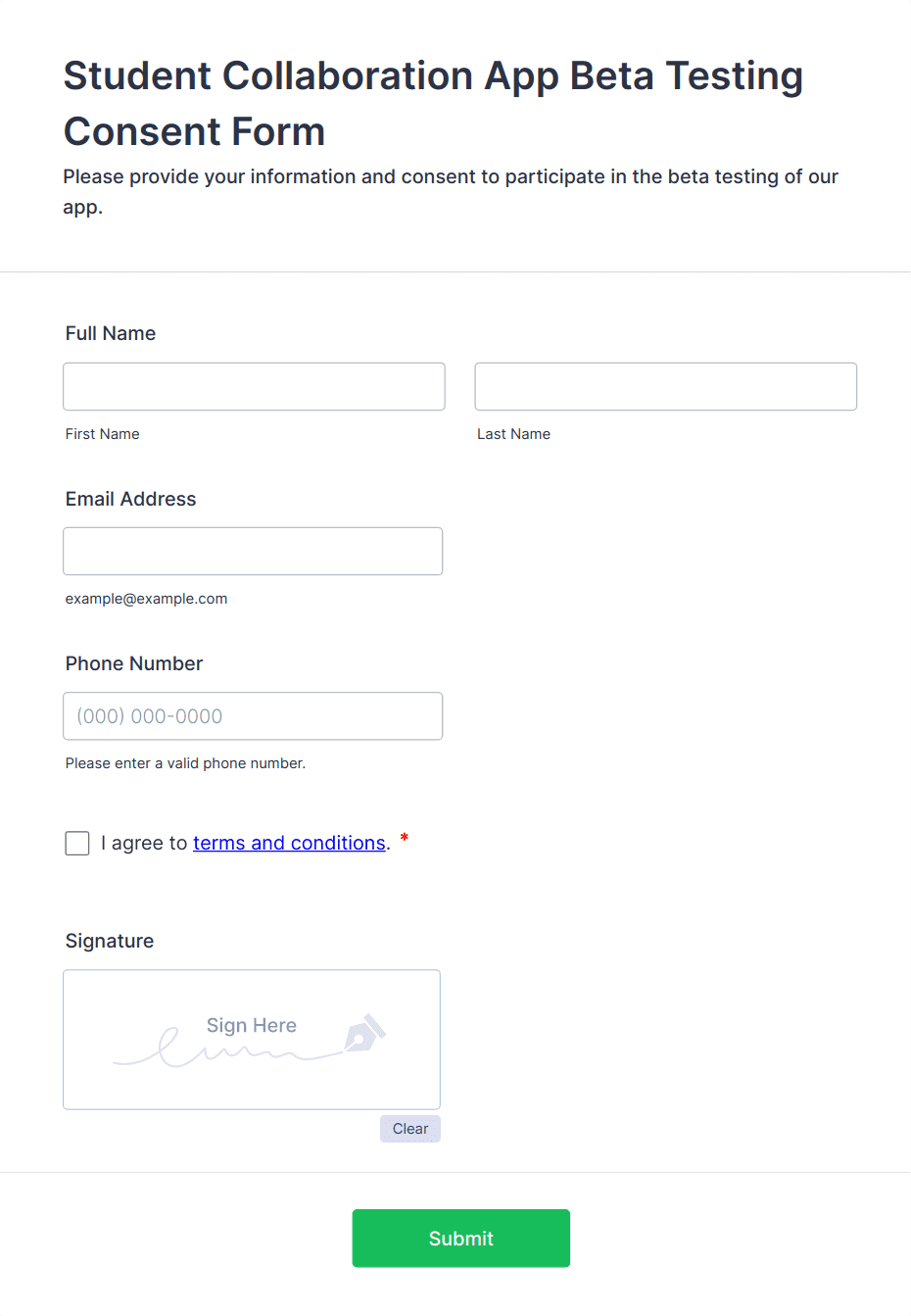 Student Collaboration App Beta Testing Consent Form Template Jotform