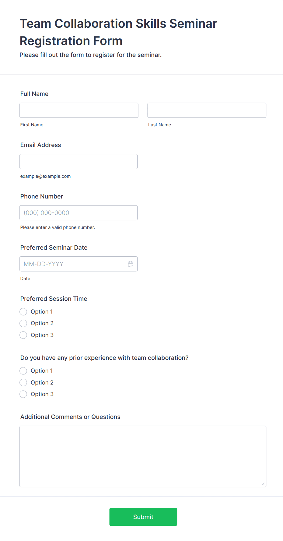 Team Collaboration Skills Seminar Registration Form Template Jotform