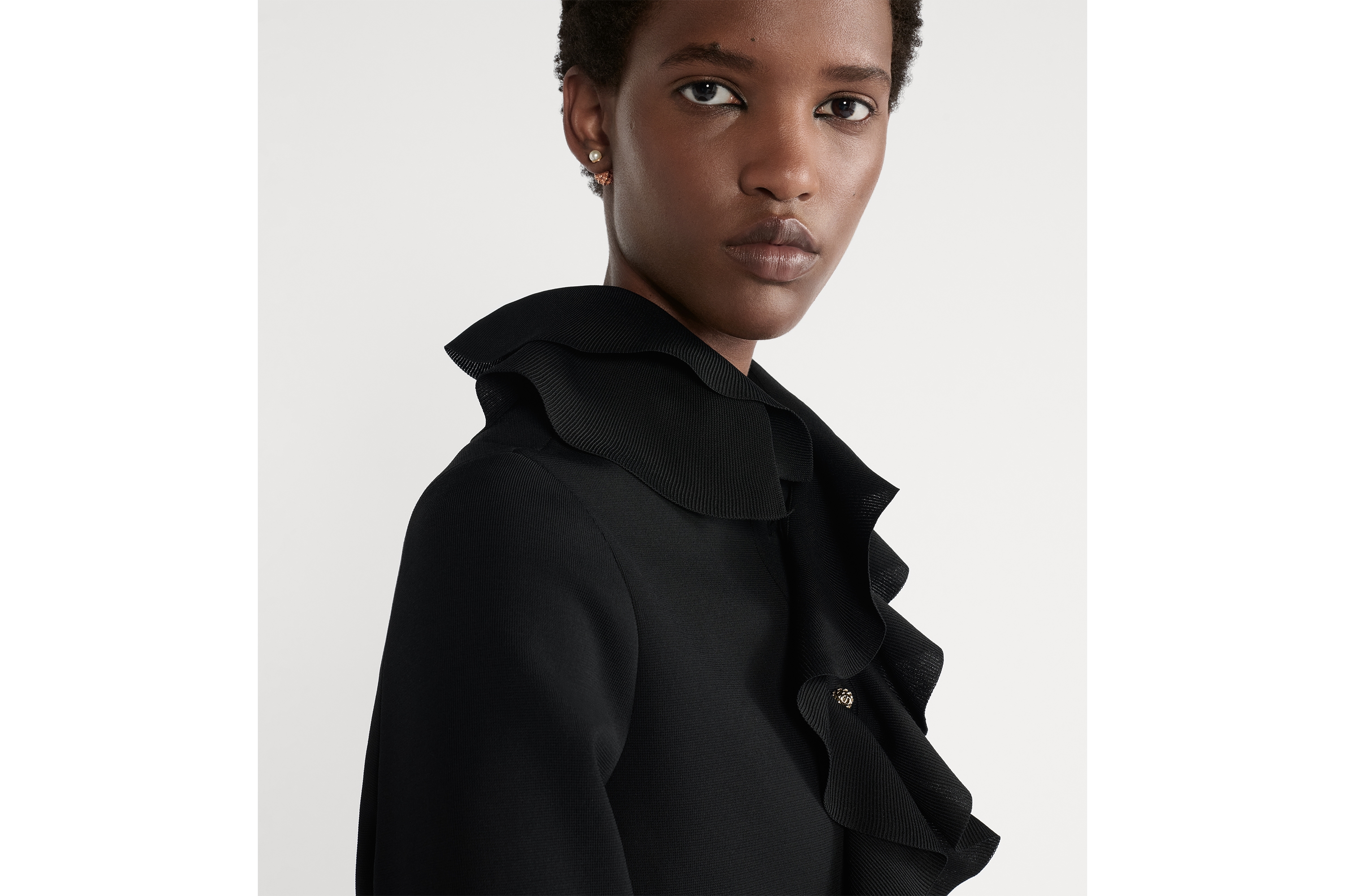 Cropped Jacket with Removable Ruched Collar Black Technical Knit DIOR